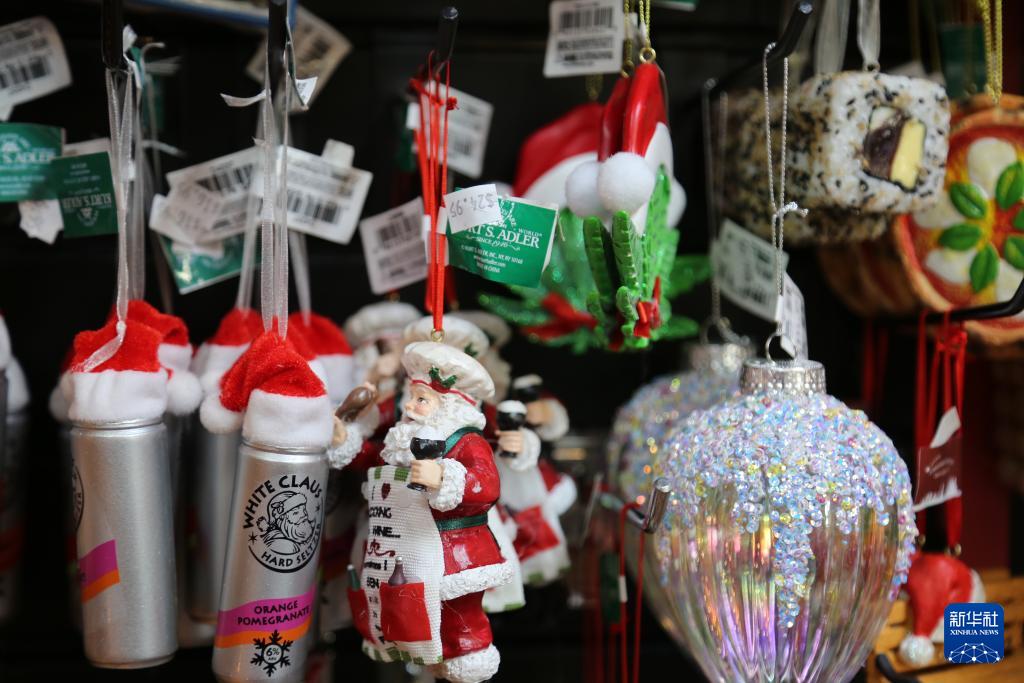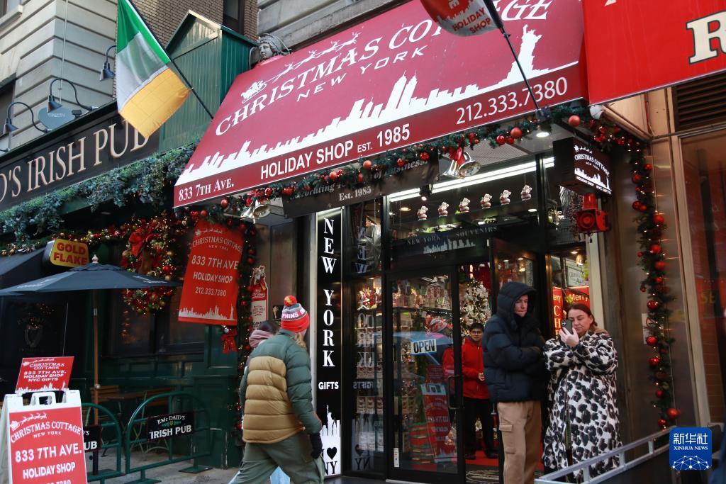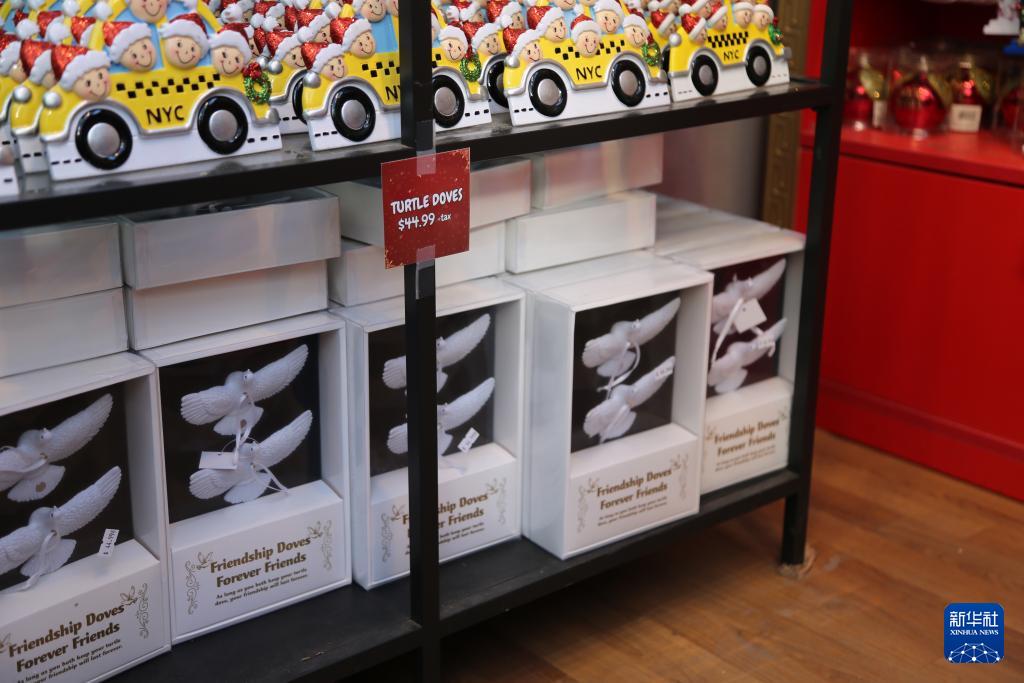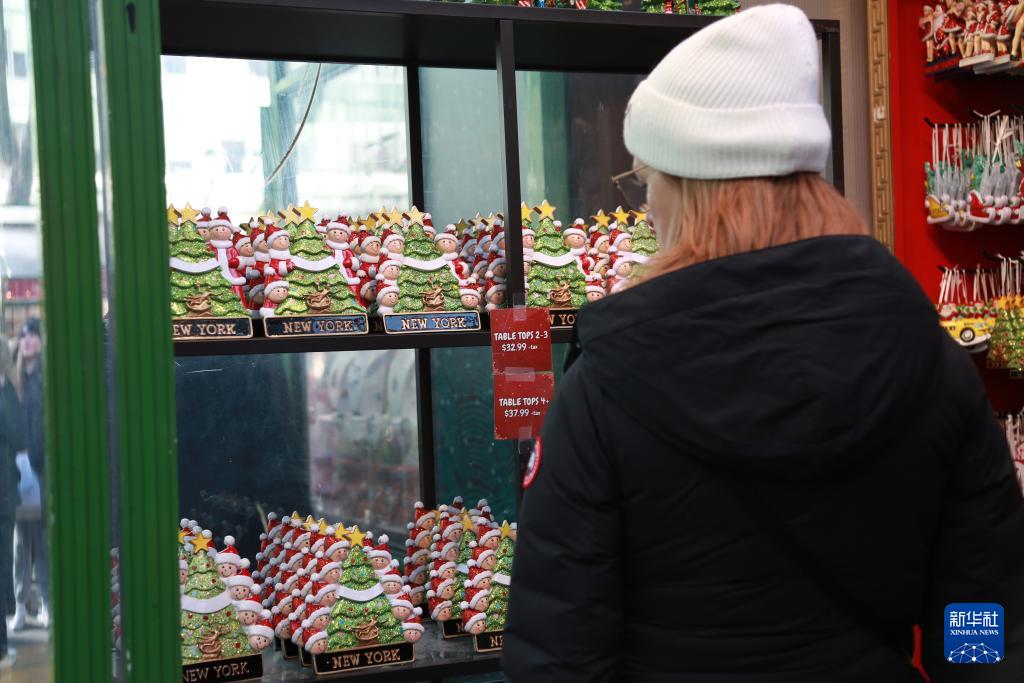 12月22日,顾客在美国纽约曼哈顿中城地区第七大道上的“圣诞小屋”礼品店内选购商品。新华社记者 刘亚南 摄