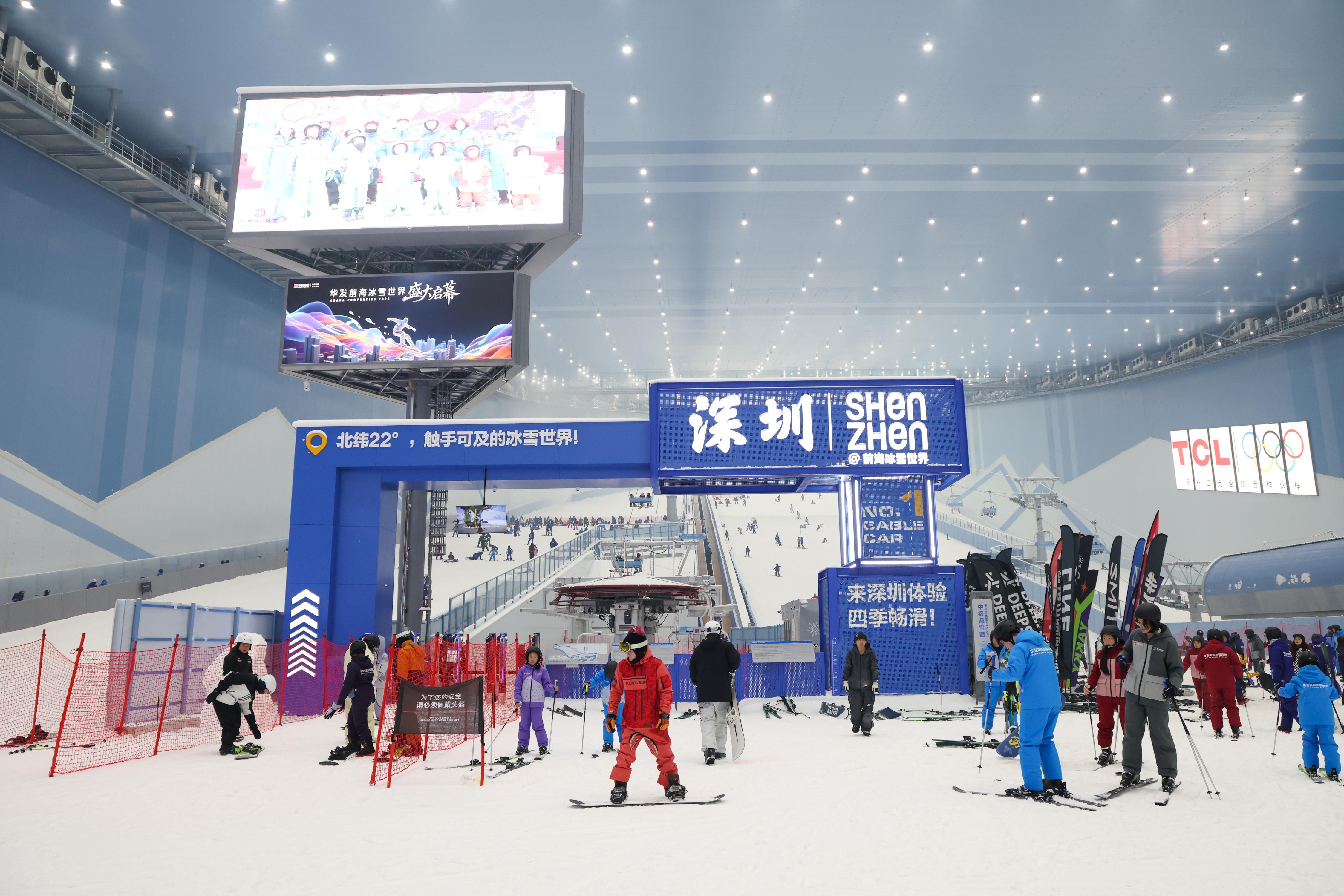 2025年10月7日,滑雪爱好者在深圳·前海冰雪世界内滑雪。 新华社记者 梁旭 摄