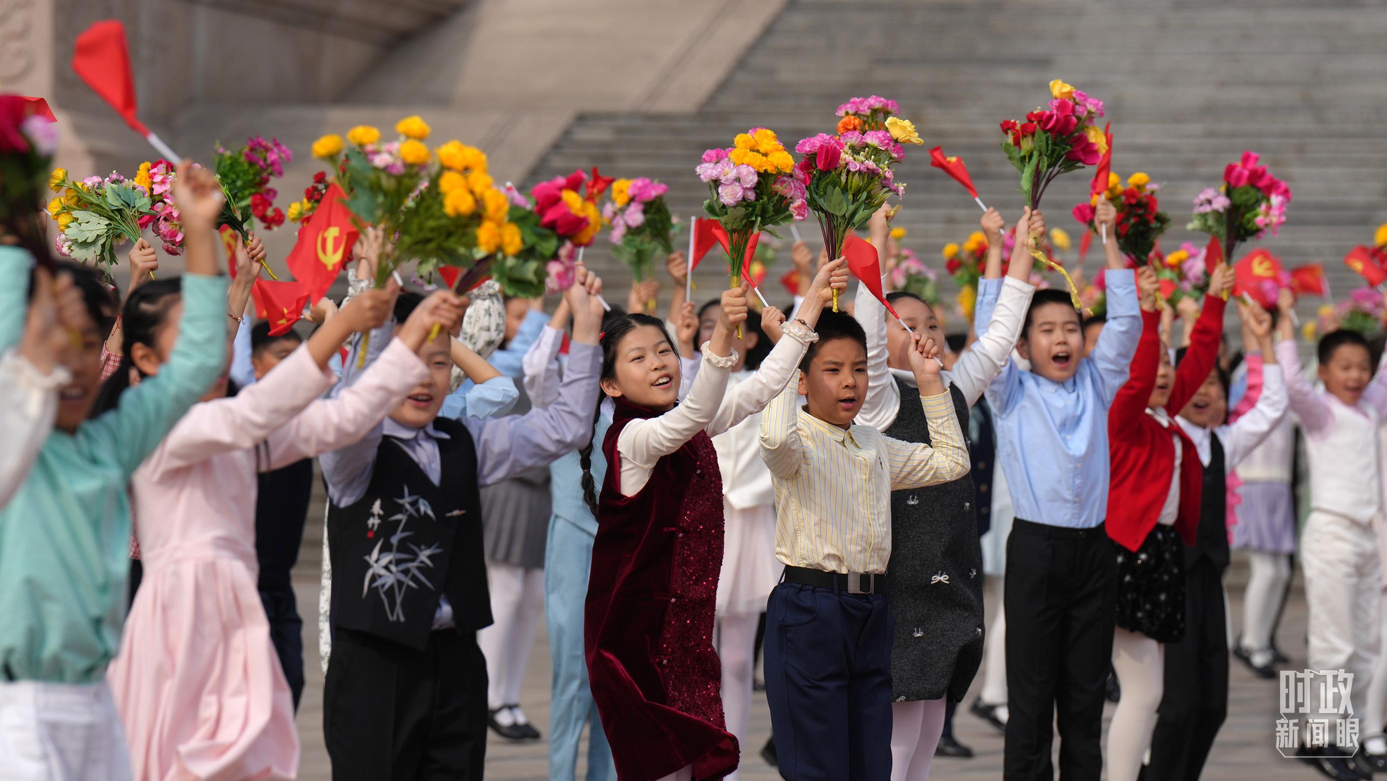 △欢迎仪式上的少年儿童。(总台记者李晋拍摄)