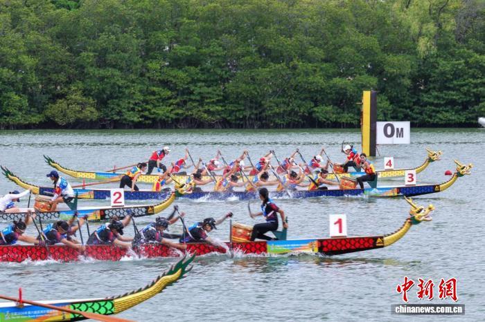 4月24日,第六届亚洲沙滩运动会龙舟女子100米直道赛决赛在海南三亚举行。图为决赛队伍在比赛中。中新网记者 骆云飞 摄 这是职业运动员的竞技场,也是大众突破自我的赛道。 中国澳门队的桨手们来自各行各业,有警察、公务员,也有护士等。澳门队女队队长黄洁雯坦言,虽然此次未站上领奖台,但队员们为了共同的目标齐心协力,每一次挥桨都是对自我的超越,已在竞技中收获成长。同样全力以赴的还有中国台北队,这群以学生为主的年轻桨手,尽管与强队存在差距,却依然在碧波中划出了属于自己的节奏,奔着奖牌全力冲刺。 这是高手过招的舞台,更是心灵相通的桥梁。 “场上是对手,场下是朋友。”这句话在三亚河畔得到了最生动的印证。中国香港队女队队长黄立敏说,常与中国台北队因赛事相遇,台胞特有的幽默感让相处氛围格外轻松,双方不仅交流划桨技巧、分享训练心得,更在赛后交换徽章,结下深厚友谊。中国台北队男队队员陈宥铭也感慨,与大陆选手早已是互加微信的老友,每年因各类赛事相聚,都能真切感受到彼此的成长与进步。