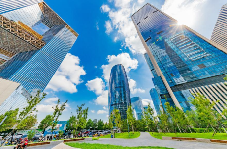 推窗见绿、出门入园,丰台正将生态之美融入百姓的日常烟火。 民生无小事,枝叶总关情。这样的创新并非孤例。近年来,丰台持续推进老旧供热管网升级改造,让热能输送更高效、更稳定;全面清零燃油锅炉,从源头切断高排放路径;搭建智慧供热平台,让室温更均衡、能耗更精准,把温暖稳稳送到千家万户。 暖居暖心,让民生福祉可感可及。丰台以一项项接地气、见实效的举措,把绿色低碳写进百姓日常生活,让民生温度与生态友好合拍共鸣。 共生共景:绘就产城融合生态画卷 清晨,丽泽金融商务区地铁站人潮涌动。 依托“一站五轨”立体交通网络,高效串联起全城资源,这里已成为名副其实的城市流量枢纽。入驻企业突破1600家,众多行业标杆在此扎根集聚,无数金融科技精英在此追梦奋斗、筑梦前行。 调研组登上丽泽SOHO云客厅向外眺望,窗外的景象令人眼前一亮:高楼之间草坪连片,在阳光映照下熠熠生辉,走进商务区,就像穿梭在一座“建在公园里的金融城”。 据介绍,商务区已经建成1290亩绿地,相当于120个足球场那么大,规划绿化接近一半,目之所及都是草木清新的生机盎然。河边沿线还在打造滨水景观带,步行道、自行车道串联起整片绿色空间,让工作在这里的人们,推开窗就能看见绿,走下楼就能走进“氧吧”,既能享受金融产业的高速发展,也能拥有公园城市的惬意与舒畅。