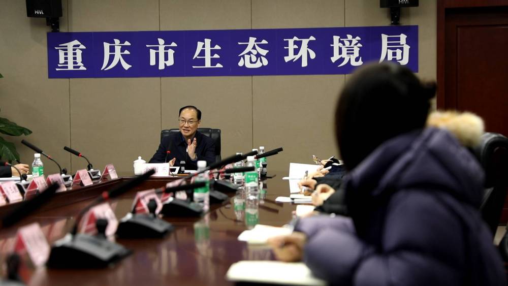 图为余国东在重庆市生态环境局召开会议。新华社记者 李爱斌 摄