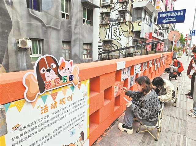 ▲“艺绘黄桷”项目志愿者在萌宠乐园进行涂鸦创作。