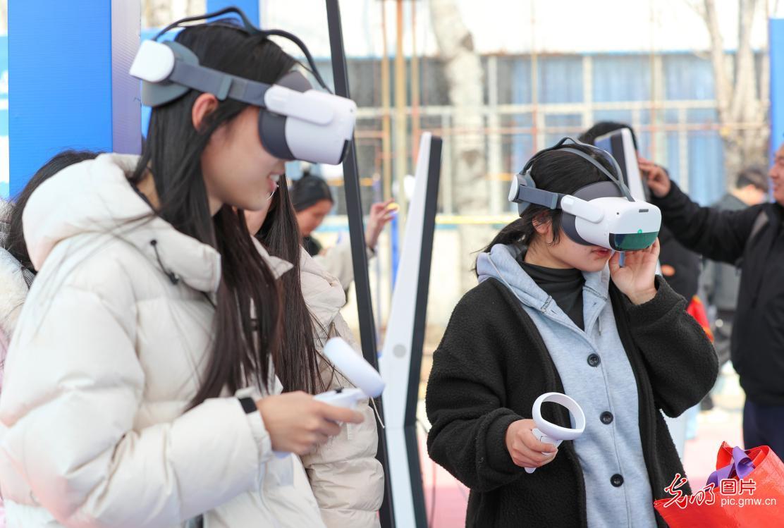 日前,“就选山东‘位’你而来”2026年春季综合类校园双选会在山东科技大学举行,1000余家用人单位提供2.8万个岗位,现场划分为地市组团、行业及央国企等特色专区。数智就业体验区集成AI面试、VR职业体验等智慧服务,助力大学生求职技能提升。眼下正值“金三银四”招聘旺季,山东多地借助AI、VR等新技术优化就业服务,推动校企人才精准对接。图为大学生在VR职业体验区参与互动。(张进刚摄/光明图片)