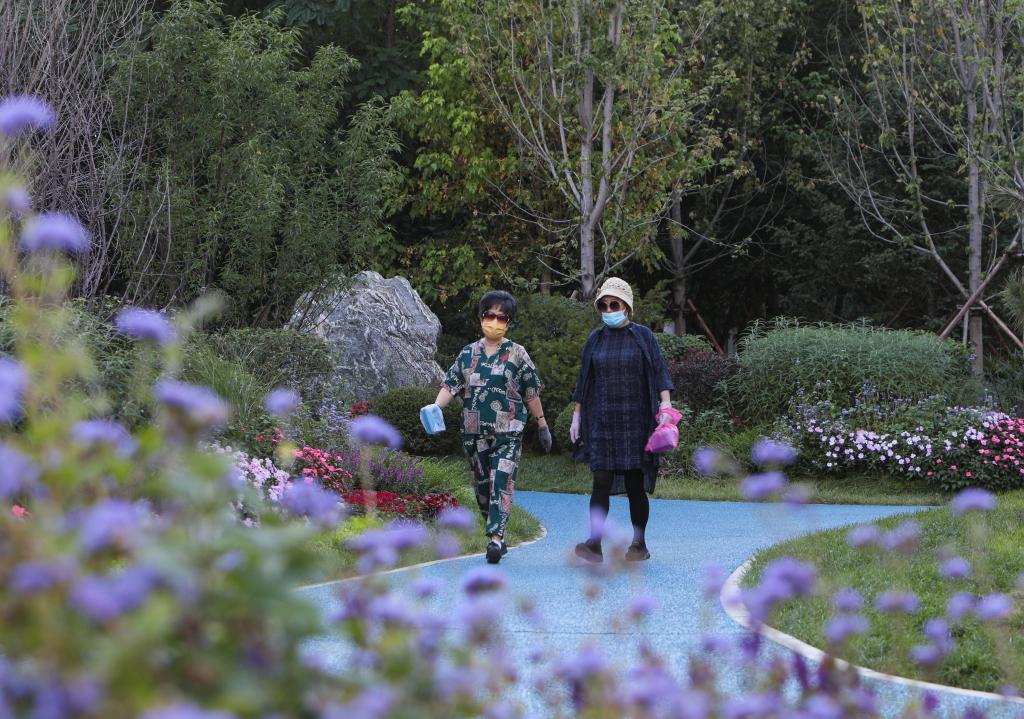 市民在沈阳市和平区文体西路一处“口袋公园”内散步。(资料图片)新华社记者王乙杰 摄